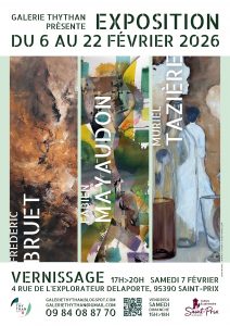 [🎨 EXPOSITION DE PEINTURES ] Par Communication16 février 2026 Du 6 au 22 février 2026, découvrez les univers de Frédéric Bruet, Marie Mayaudon et Muriel Tazieff. Galerie Thy Than Vernissage : samedi 7 février, de 17h à 20h 4 rue de l’Explorateur Delaporte Venez nombreux partager ce moment artistique !